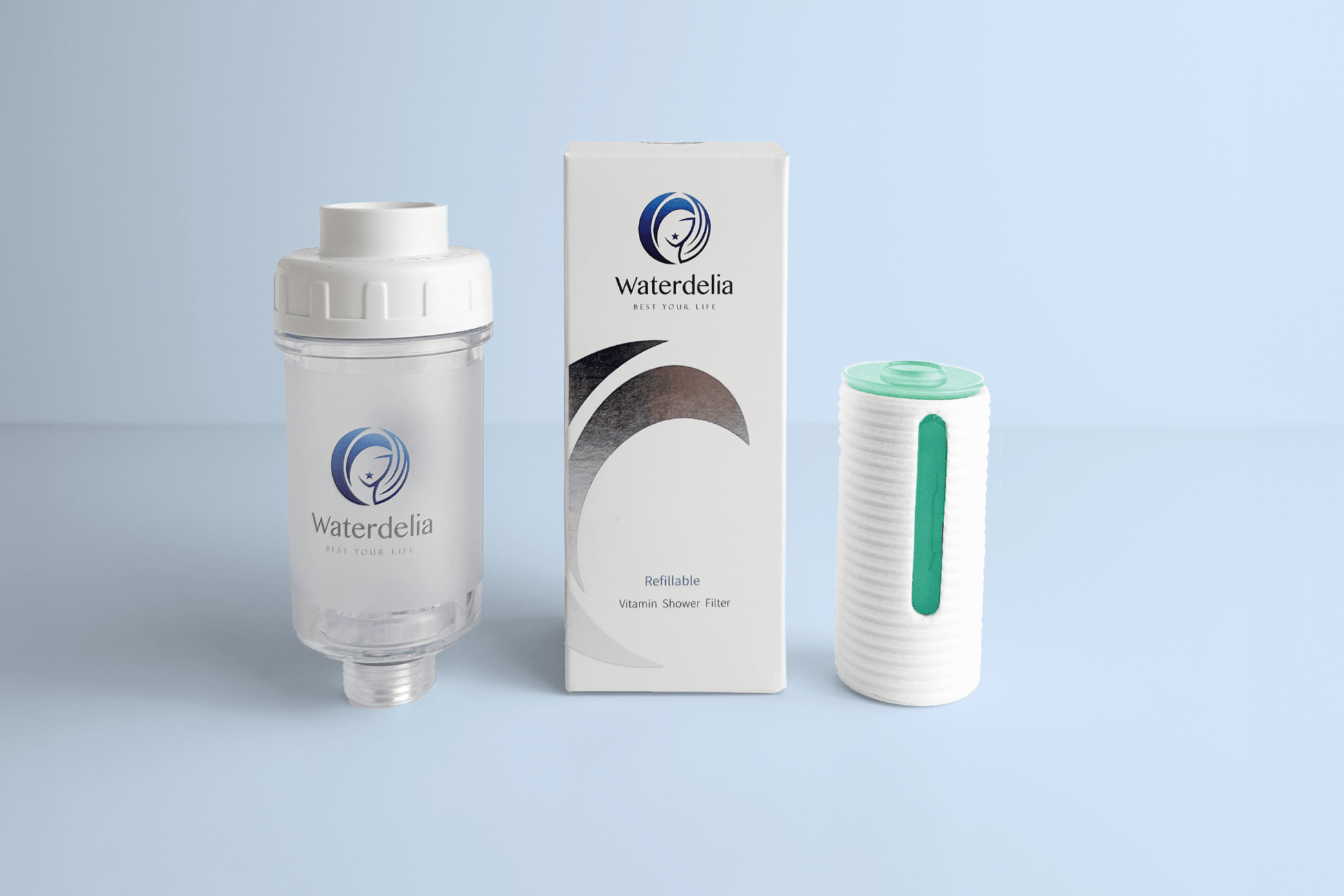 Experience the transformative power of Waterdelia's Vitamin C filter, effectively eliminating chlorine, boosting skin and hair moisture, preserving color, and enhancing brilliance, brightness, and shine.